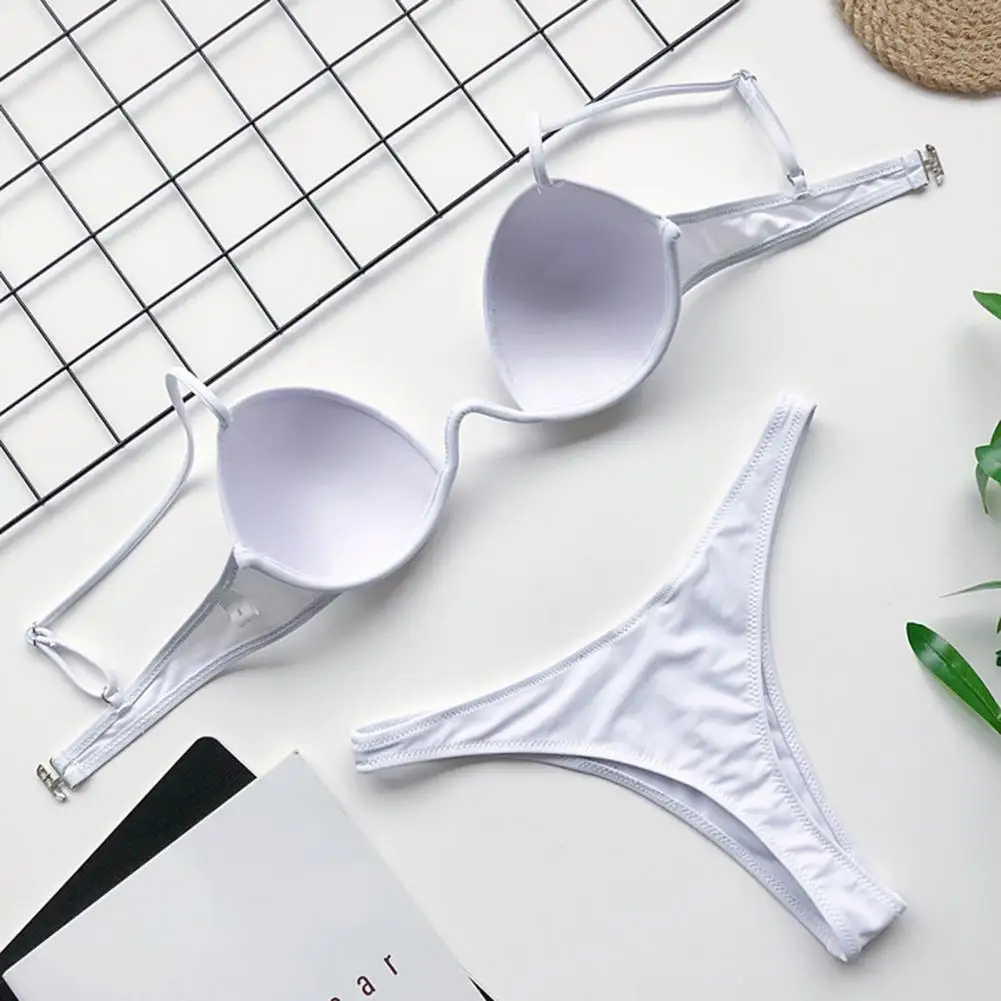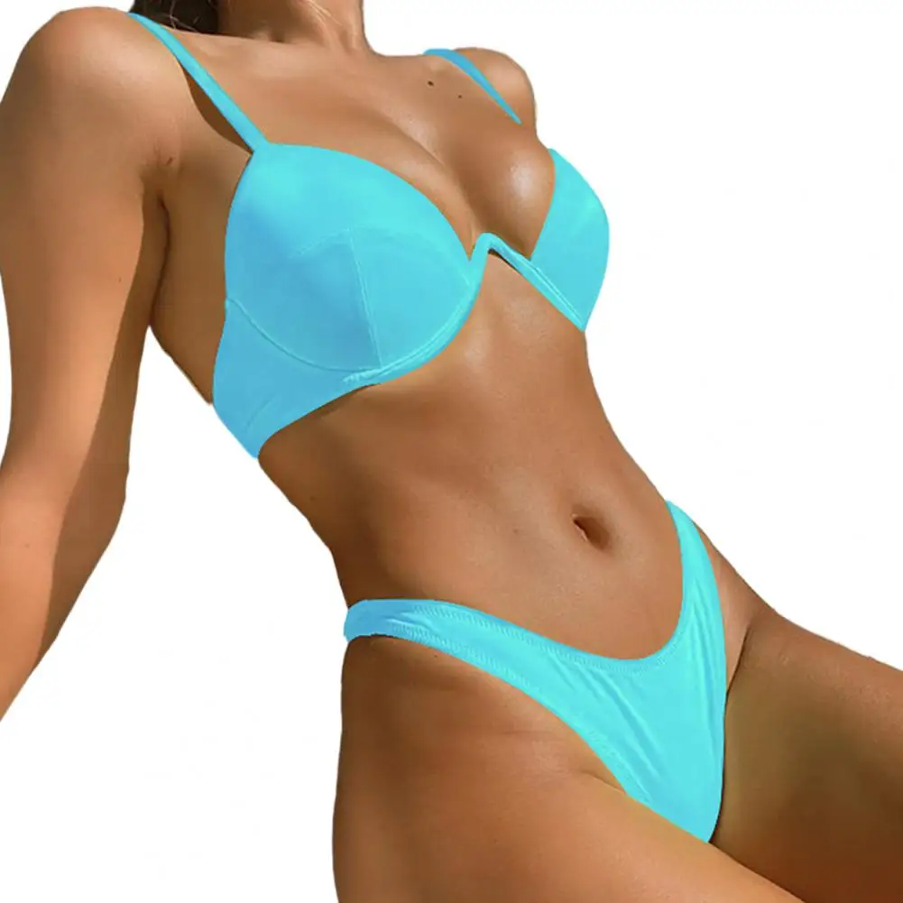 1 Set Bathing Suits Super Soft Tear-resistant Polyester High Cut Padded Underwire Swimsuit Bikini Set for Female