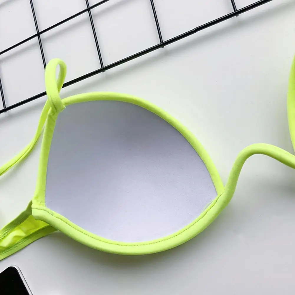 Adopted vivid solid colors design, this bikini swimsuit goes well with other costume or accessories. It is perfect to show off your sexy body anywhere.