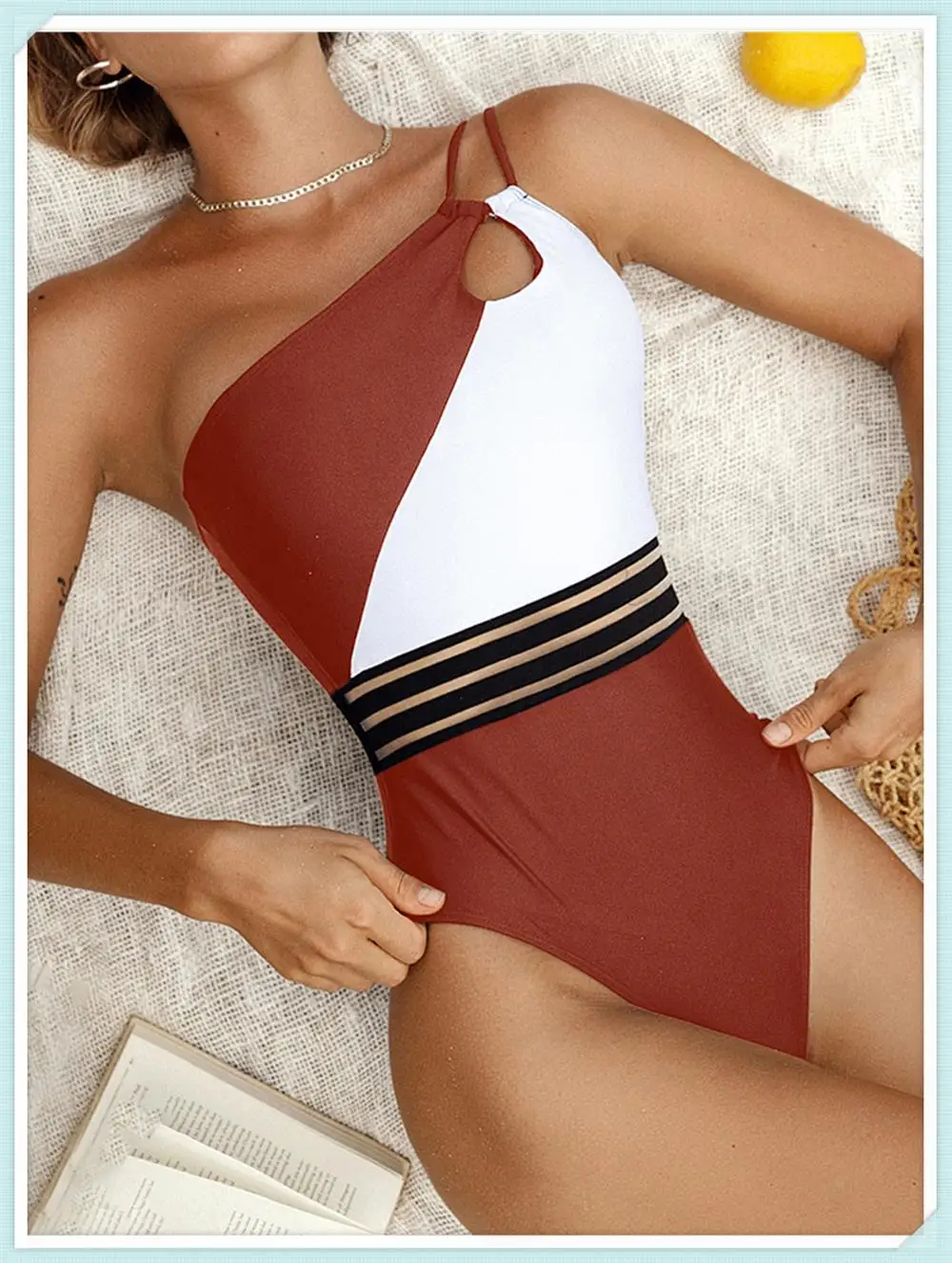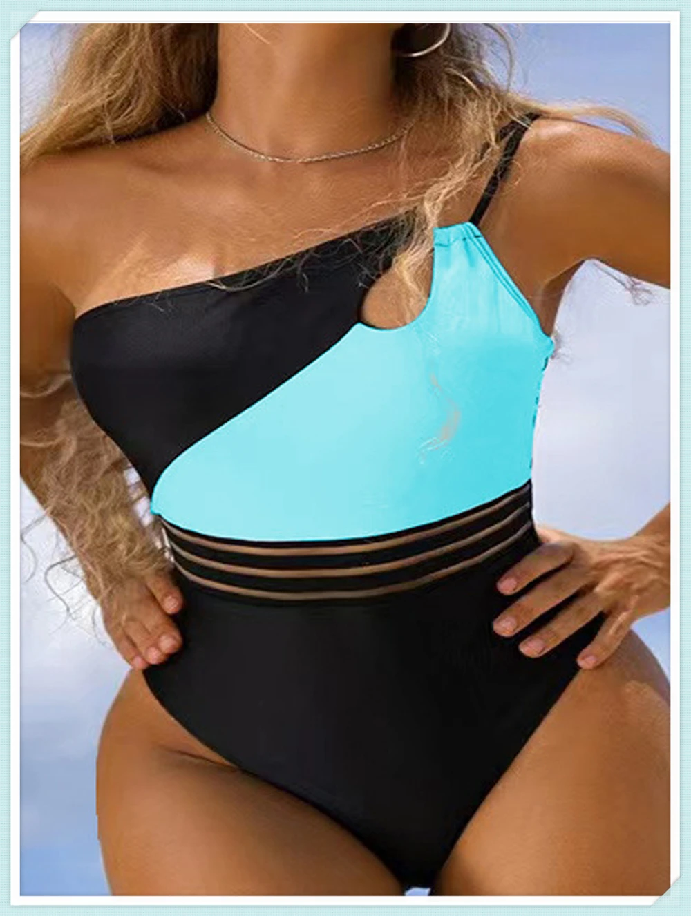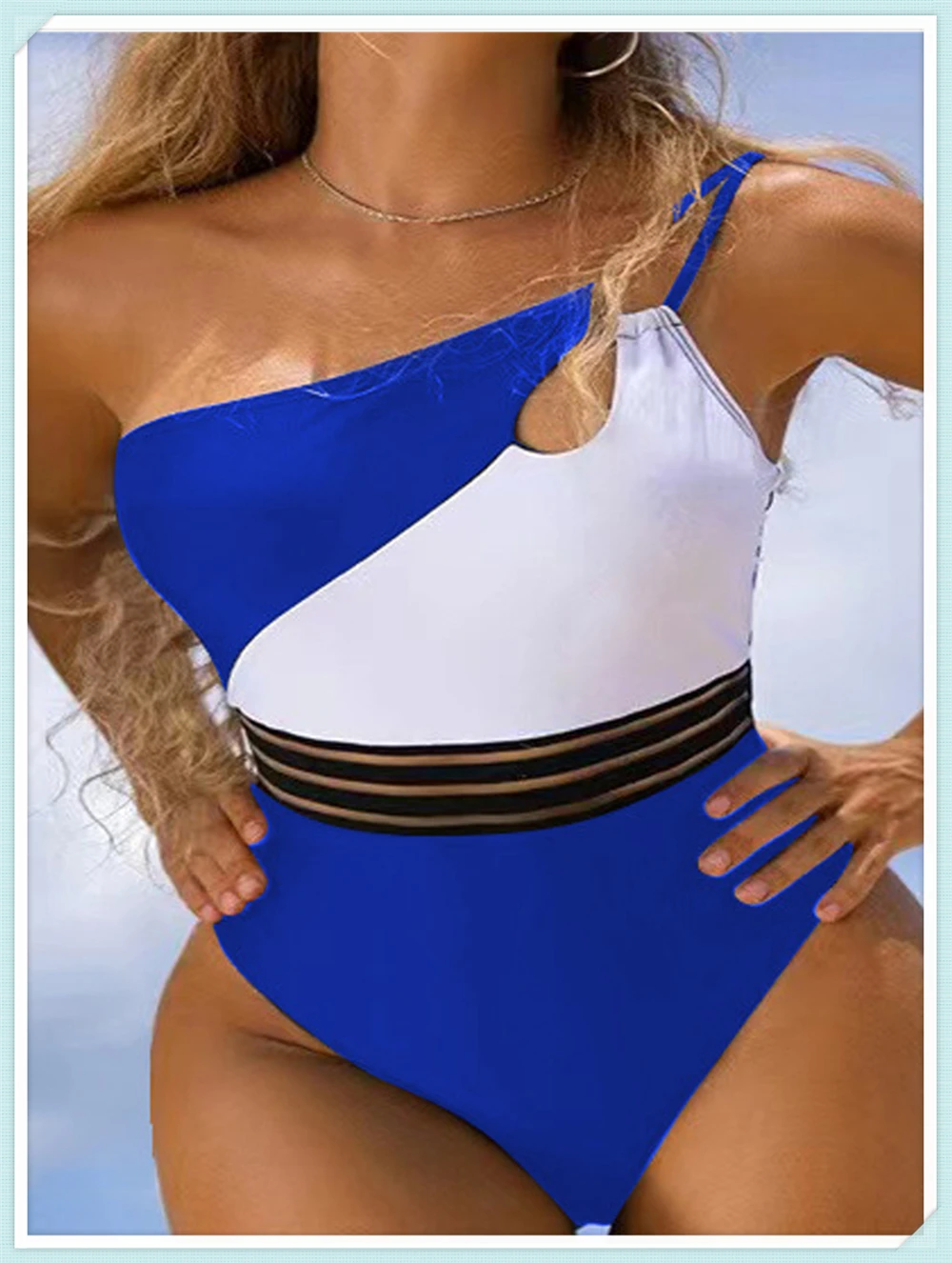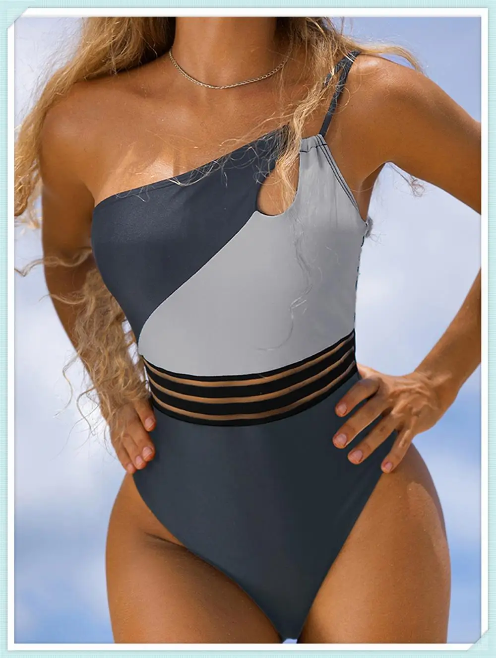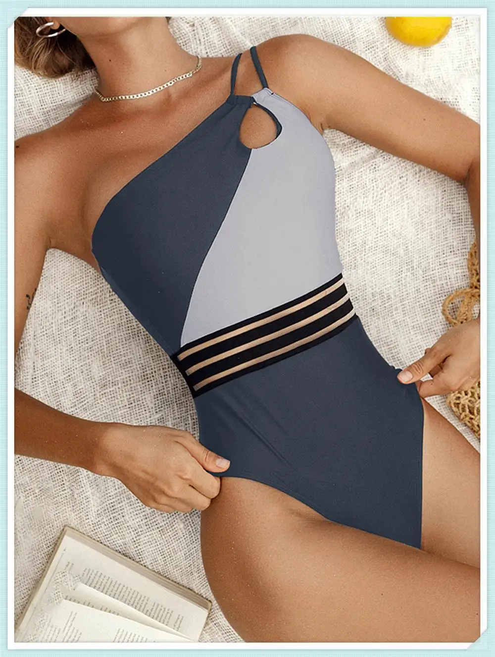 One Shoulder Cut Out Bikini Swimsuit Women Cloth Panel Patchwork Bodysuit Swimwear Female Surfing Sports Bathing Suit Beachwear