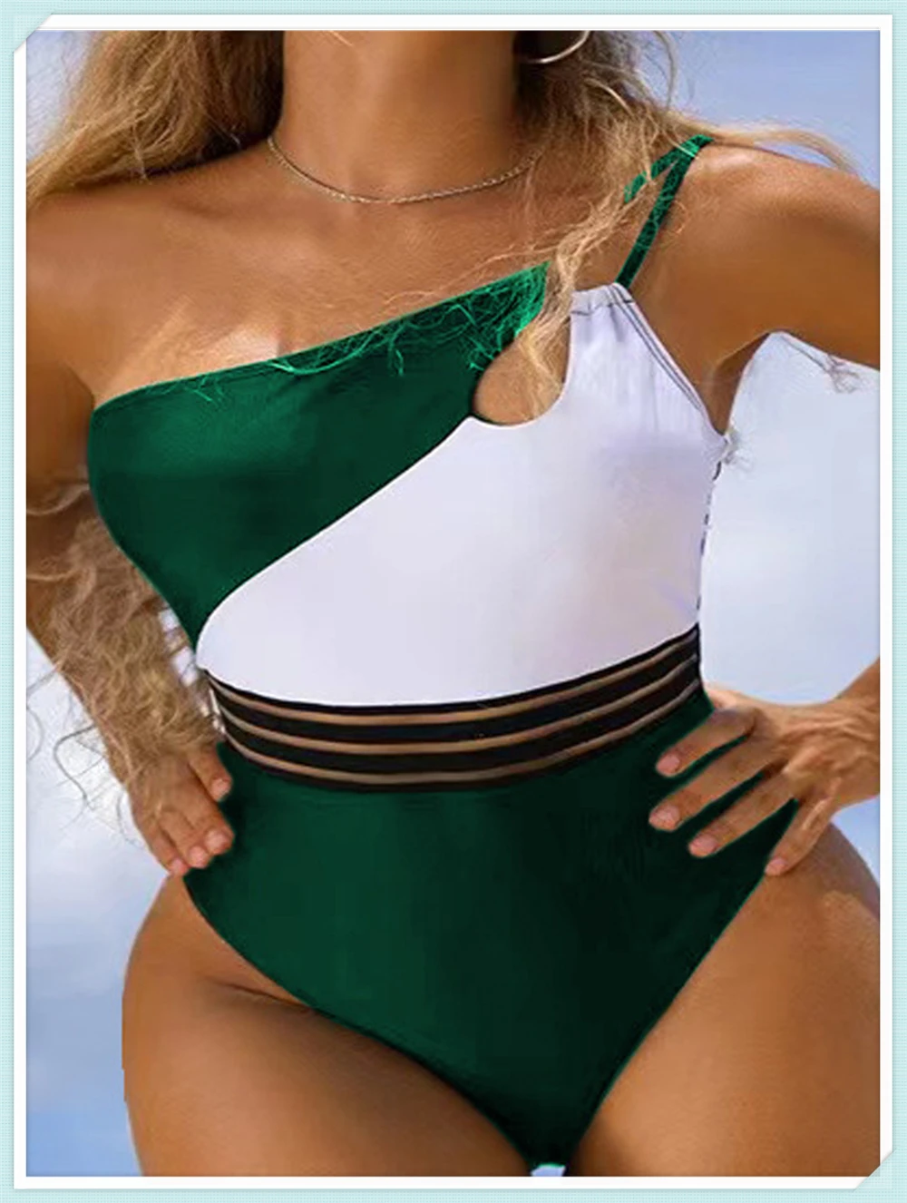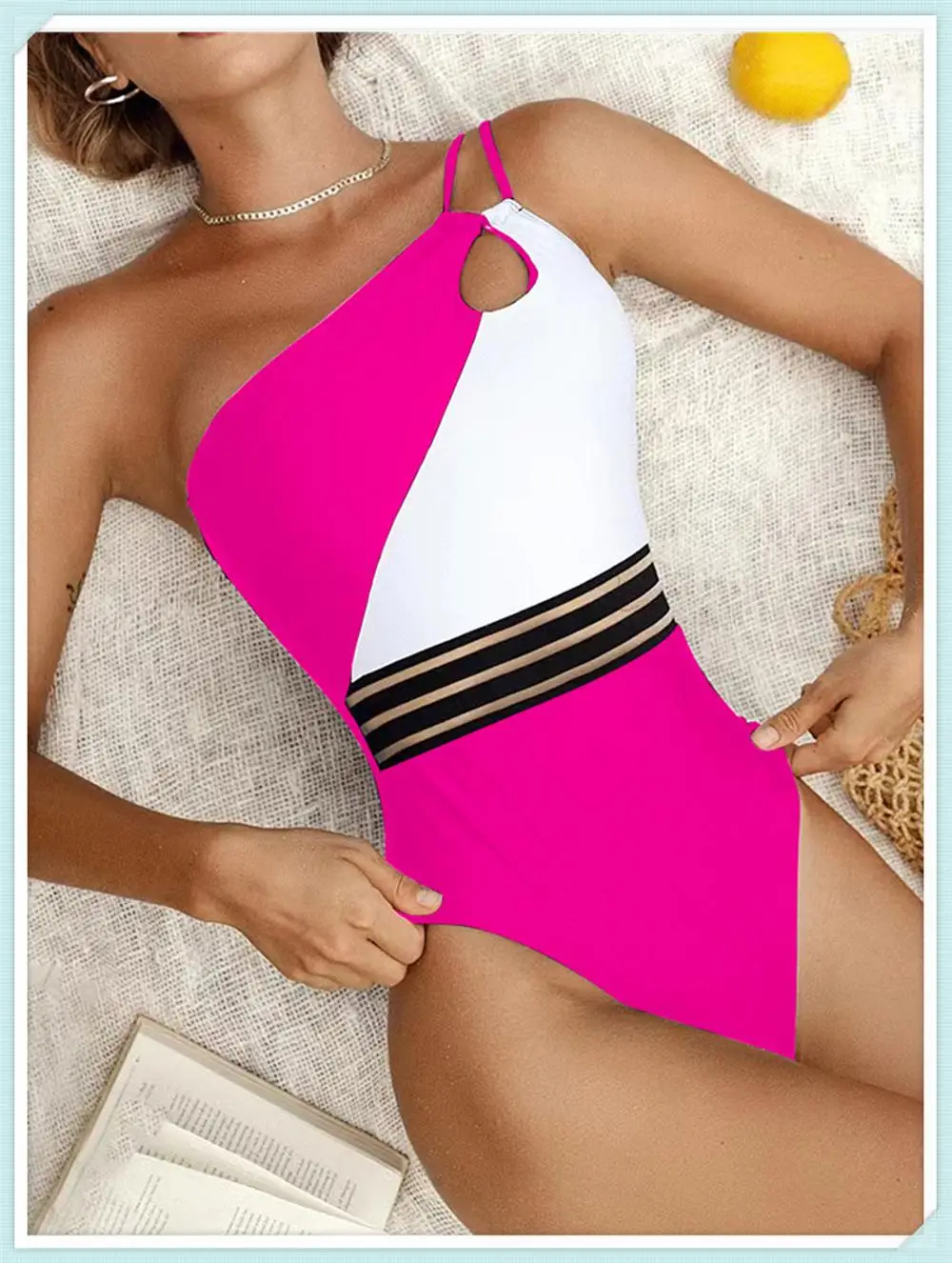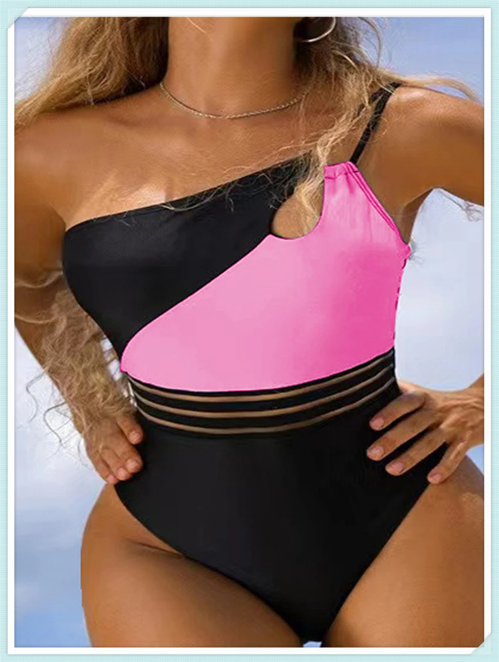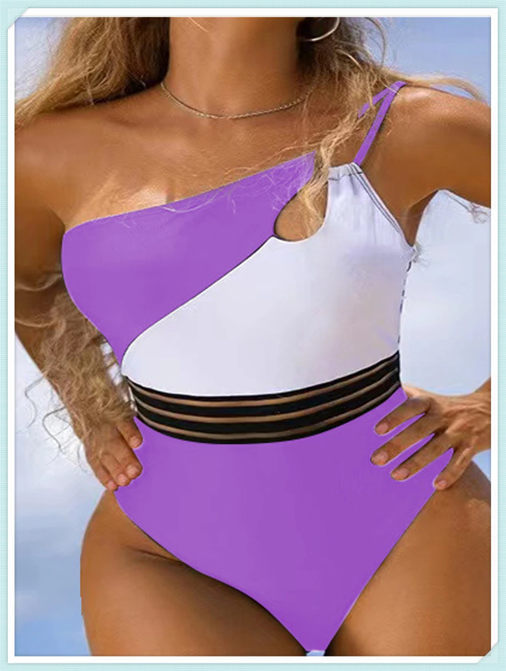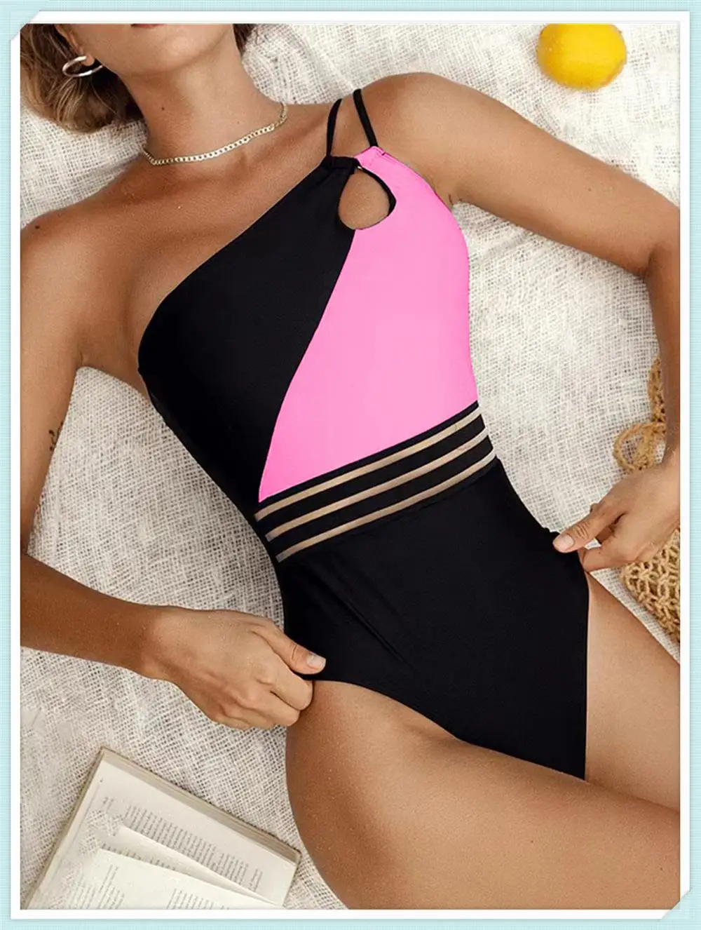 One Shoulder Cut Out Bikini Swimsuit Women Cloth Panel Patchwork Bodysuit Swimwear Female Surfing Sports Bathing Suit Beachwear