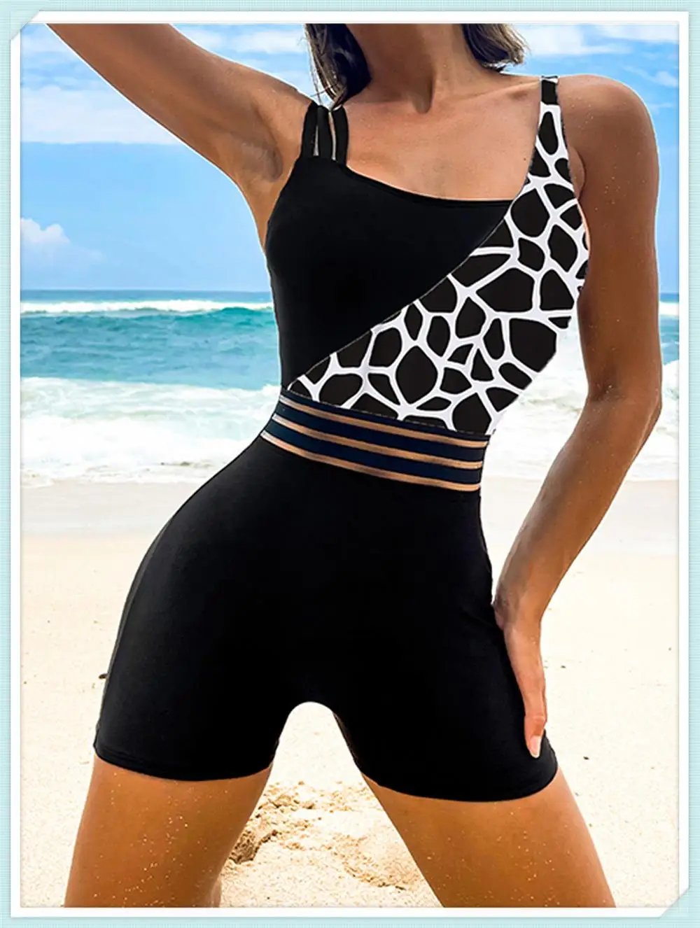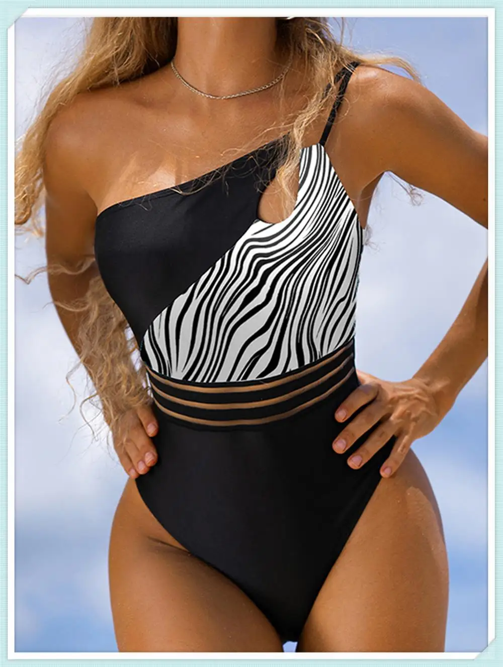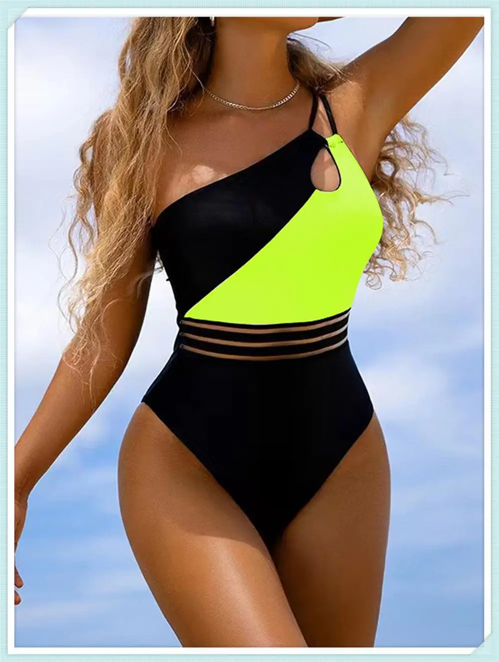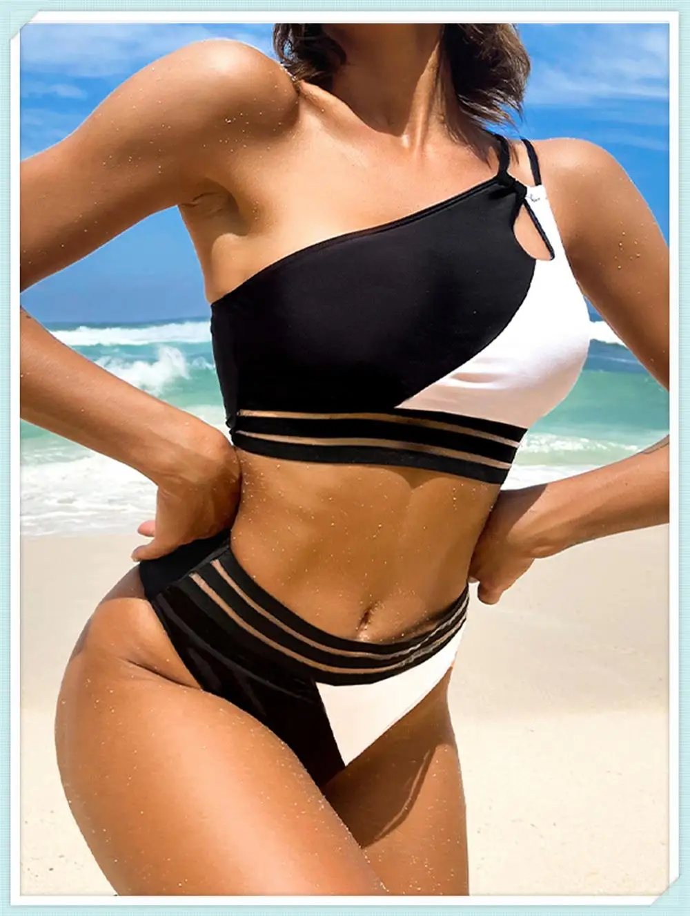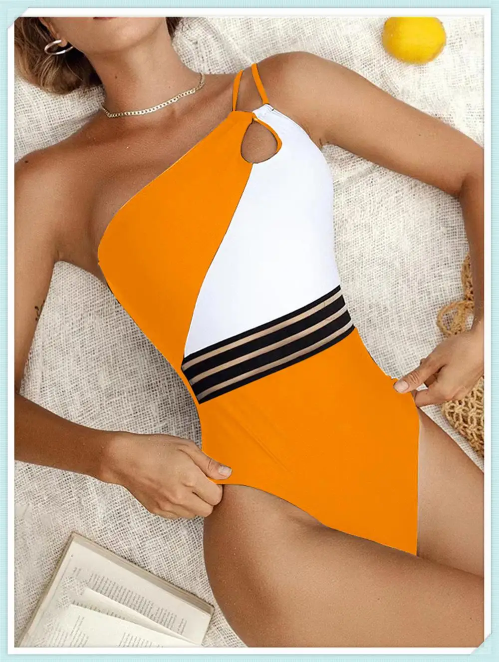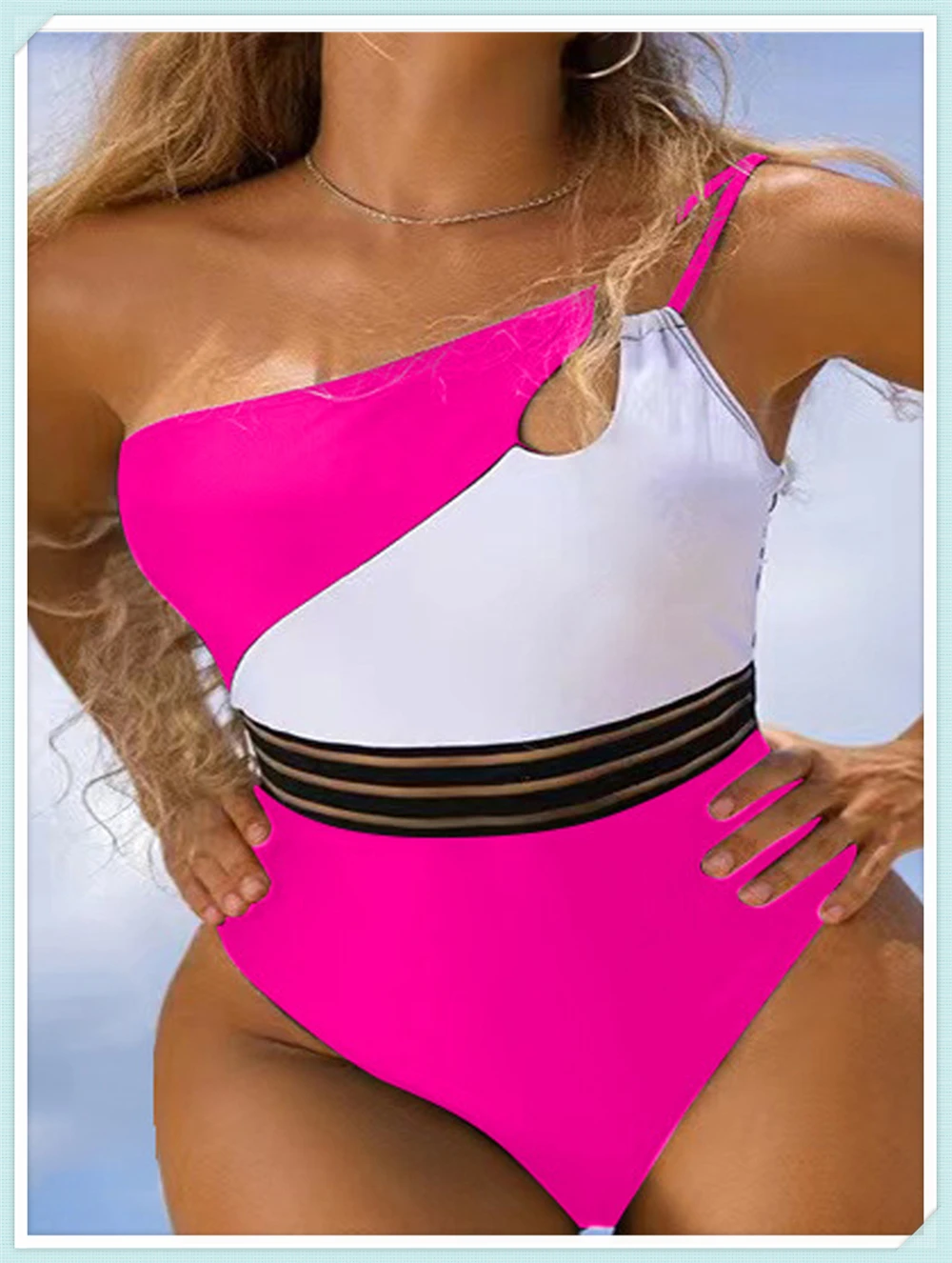 One Shoulder Cut Out Bikini Swimsuit Women Cloth Panel Patchwork Bodysuit Swimwear Female Surfing Sports Bathing Suit Beachwear