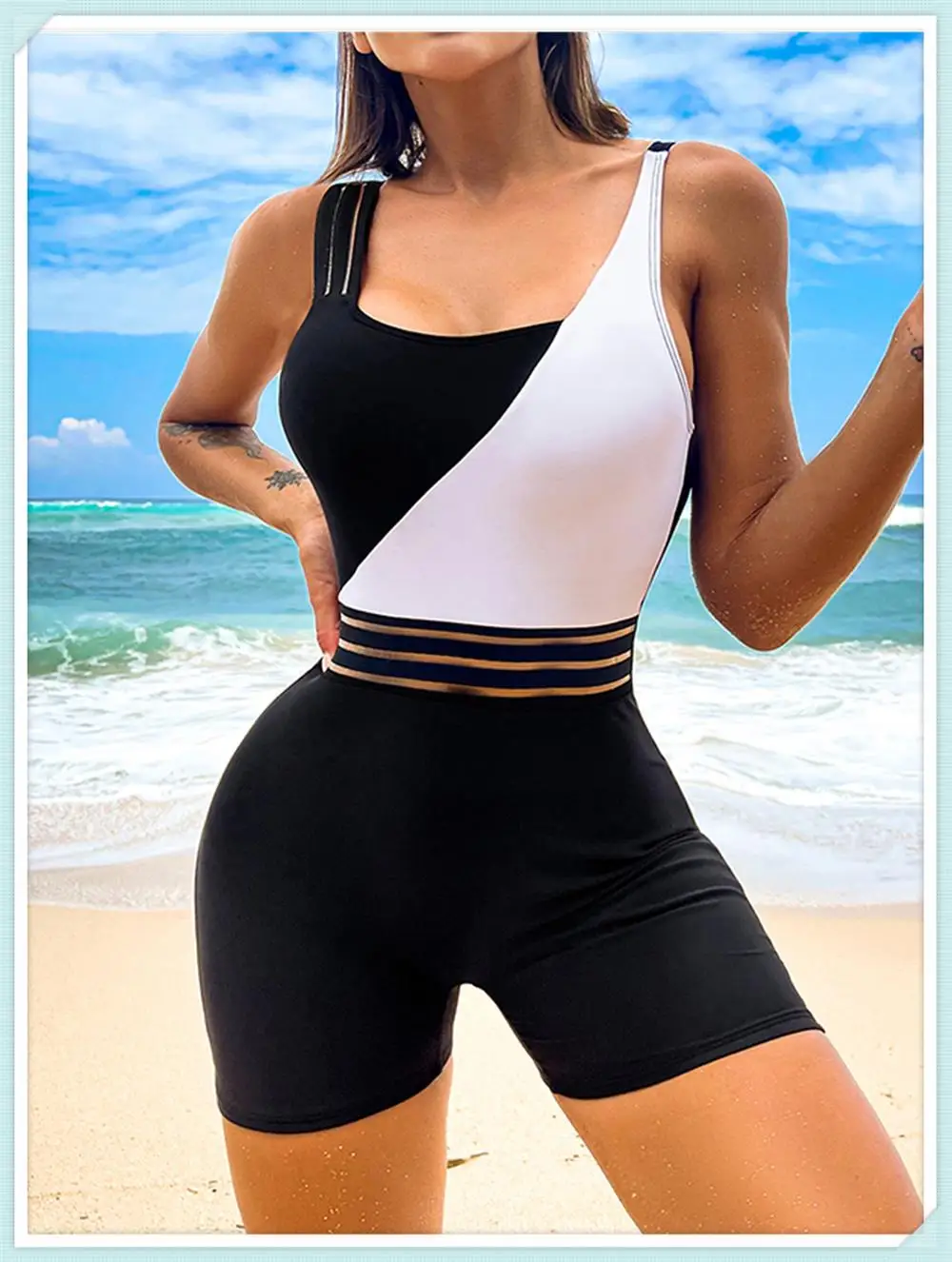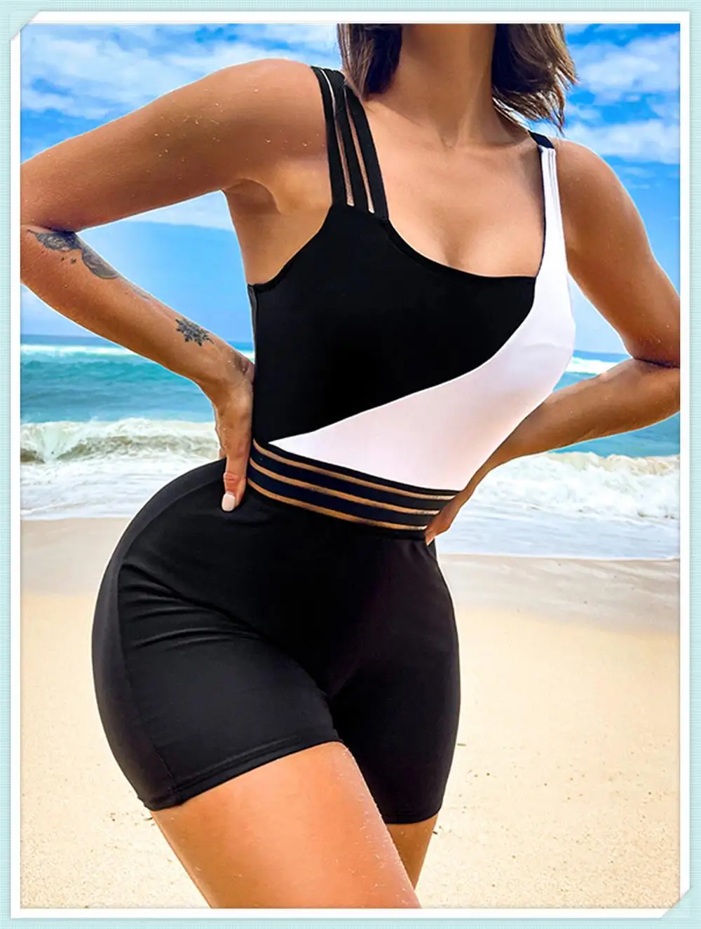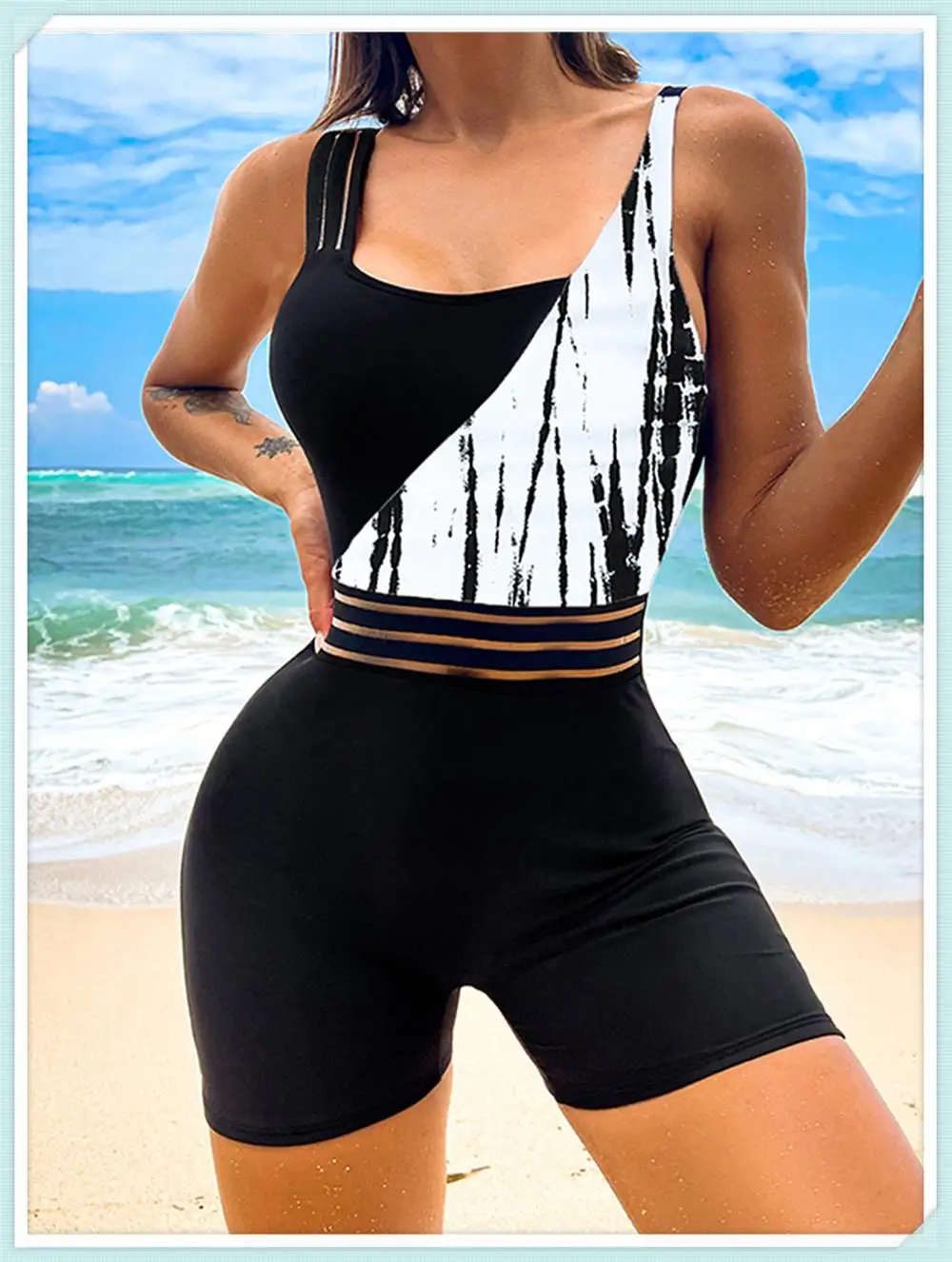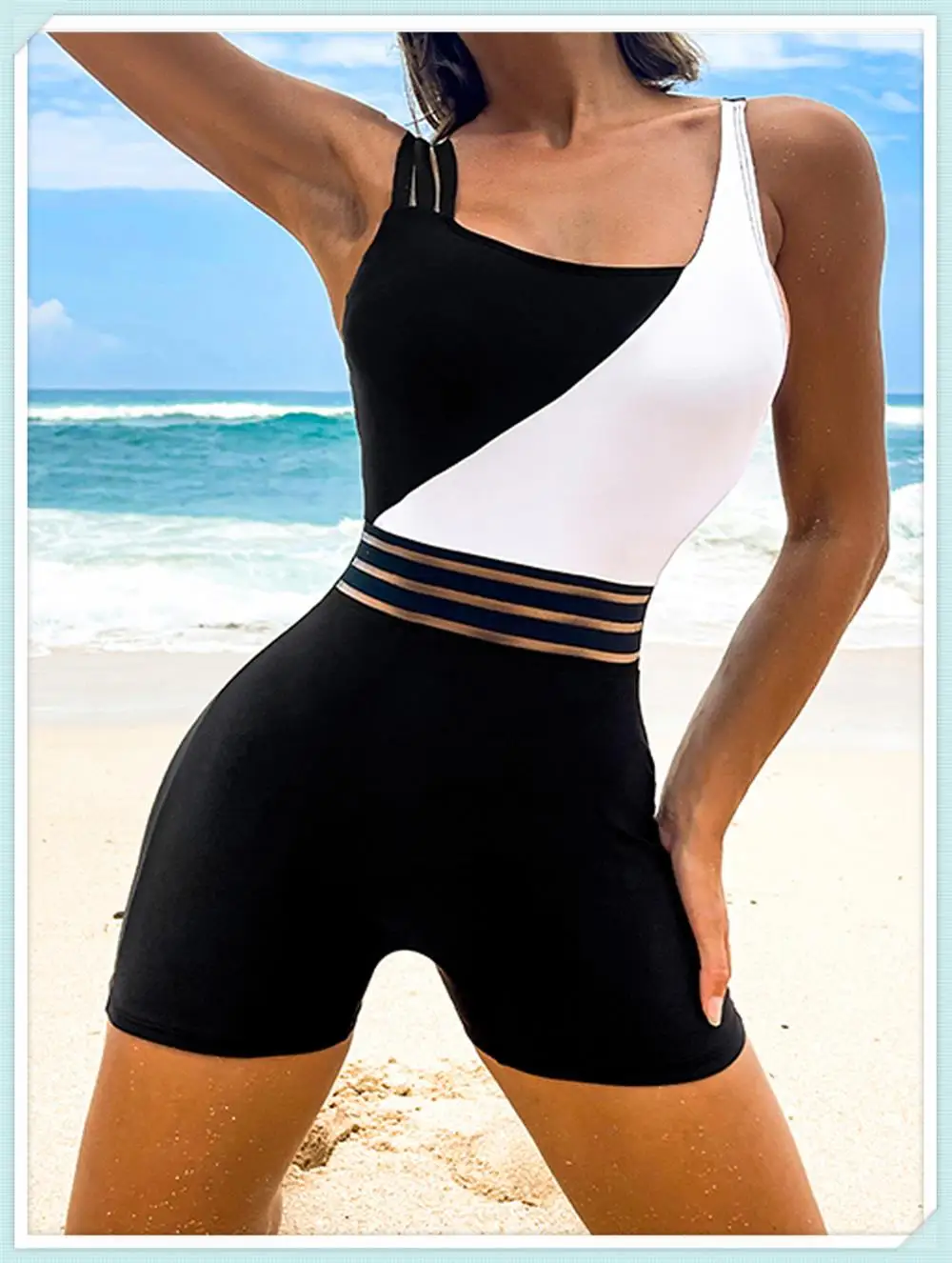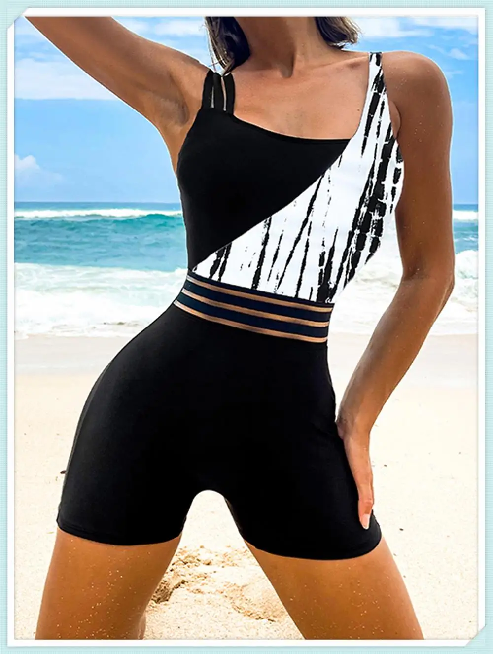 One Shoulder Cut Out Bikini Swimsuit Women Cloth Panel Patchwork Bodysuit Swimwear Female Surfing Sports Bathing Suit Beachwear