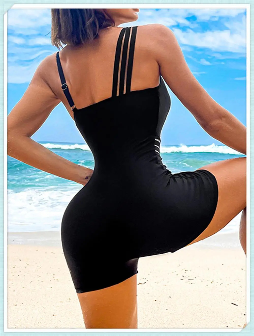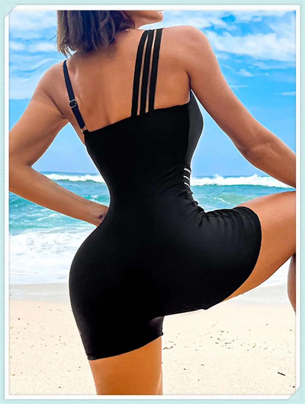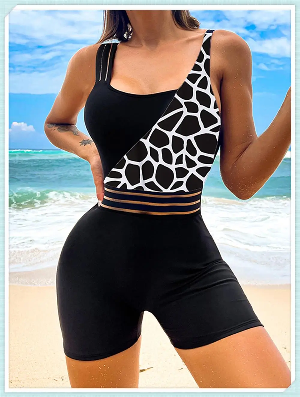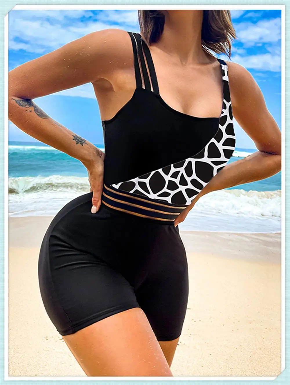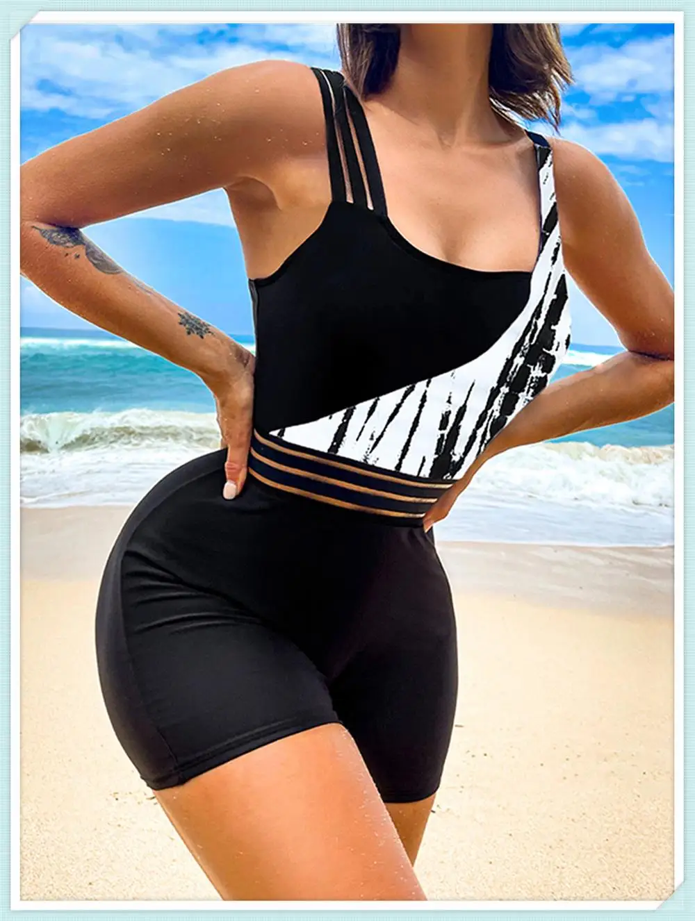 One Shoulder Cut Out Bikini Swimsuit Women Cloth Panel Patchwork Bodysuit Swimwear Female Surfing Sports Bathing Suit Beachwear