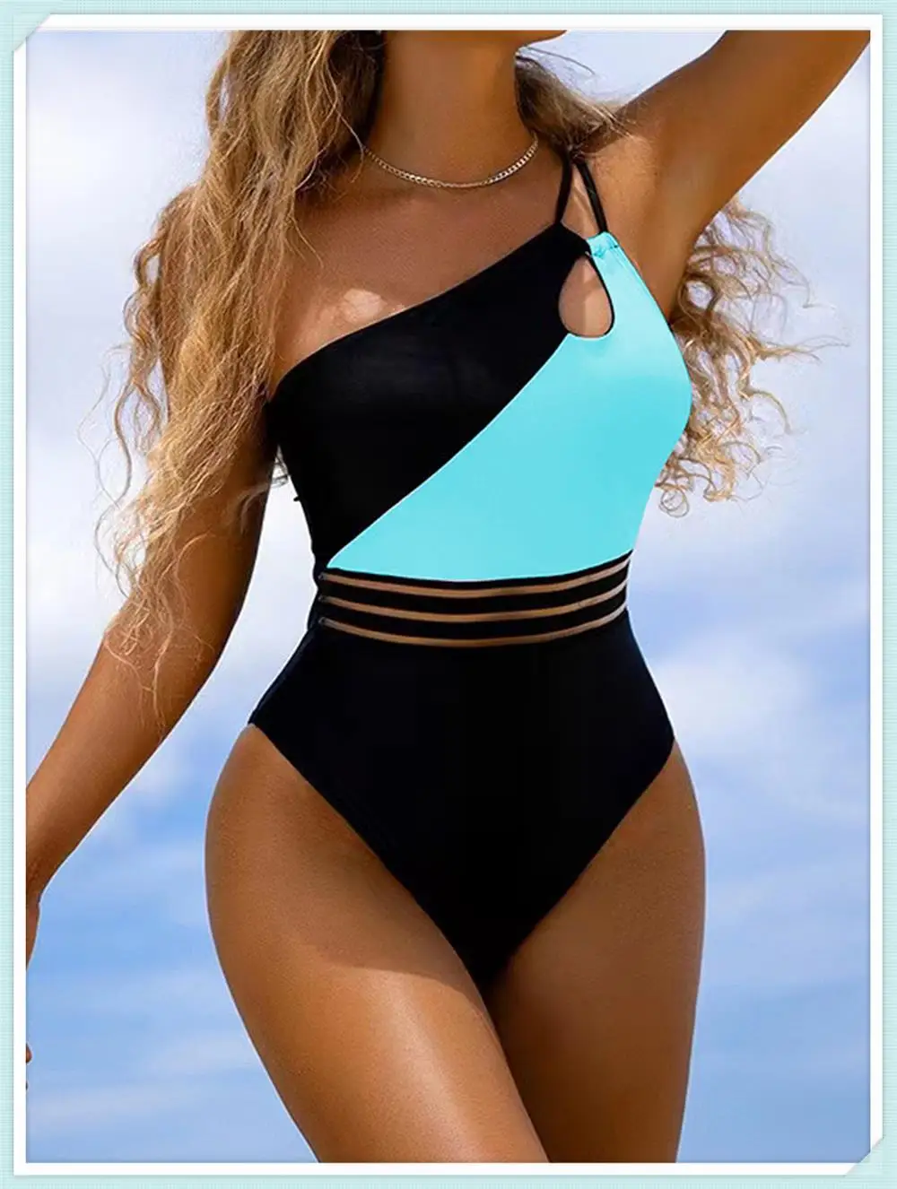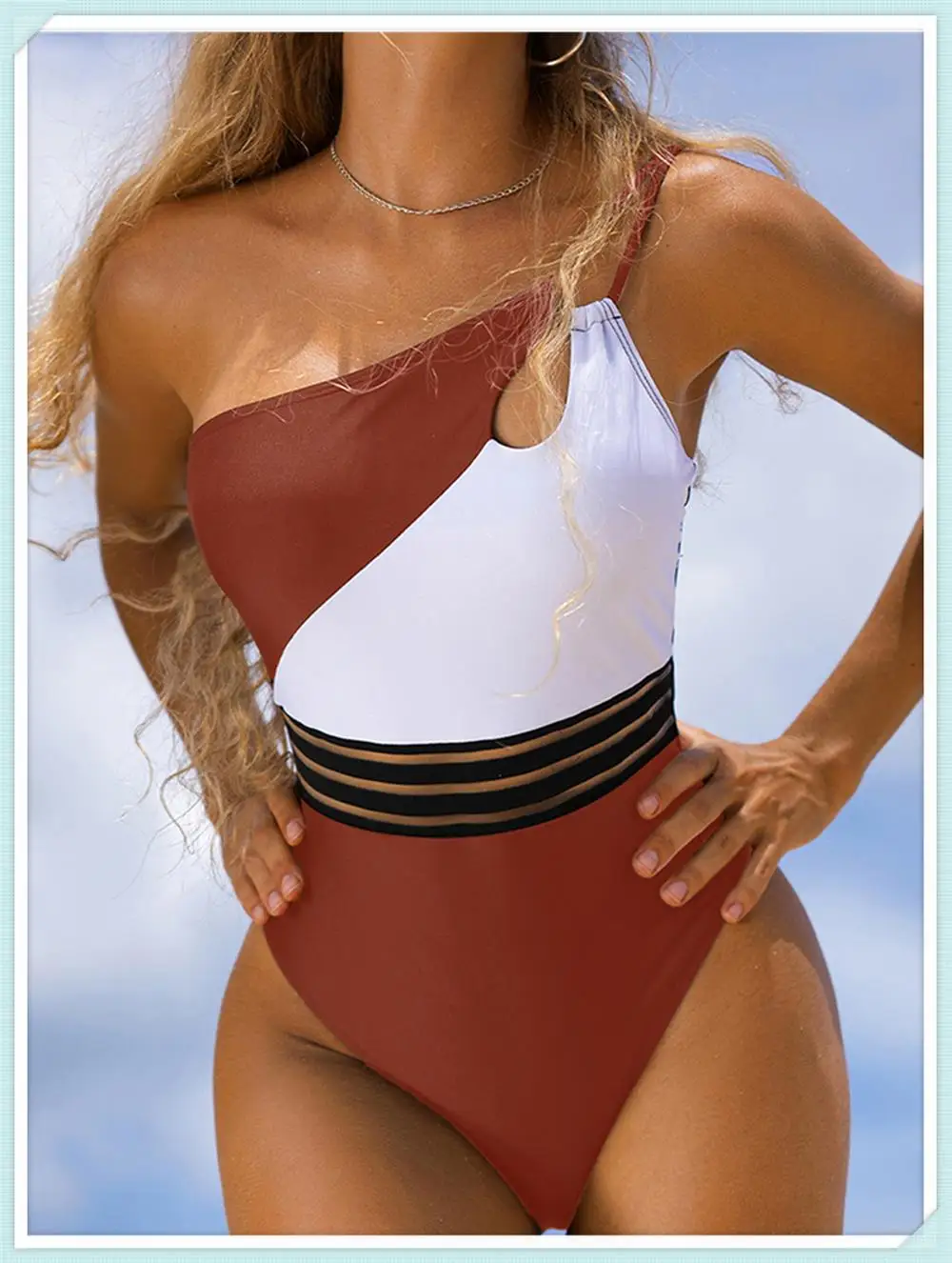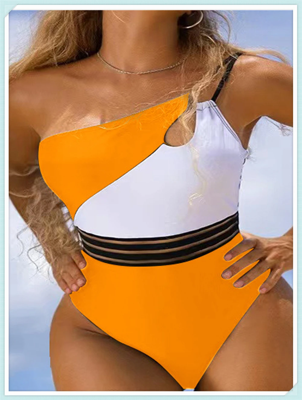 Model Number: One Shoulder Cut Out Bikini Women Cloth Panel Patchwork Bodysuit