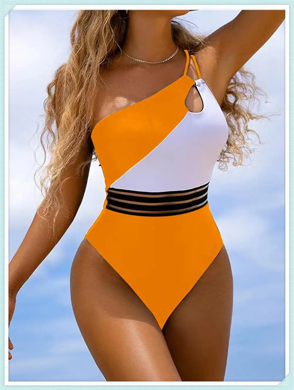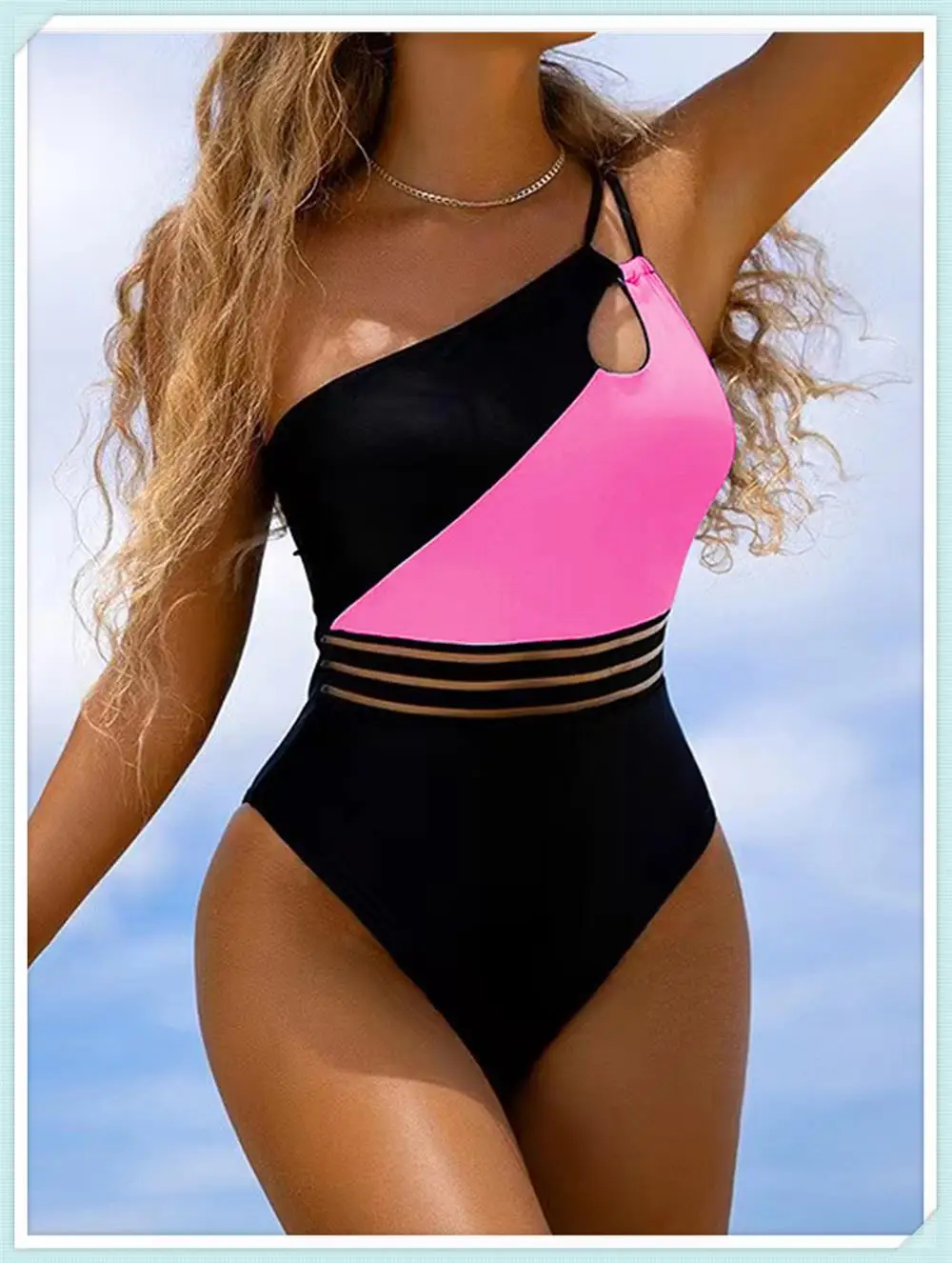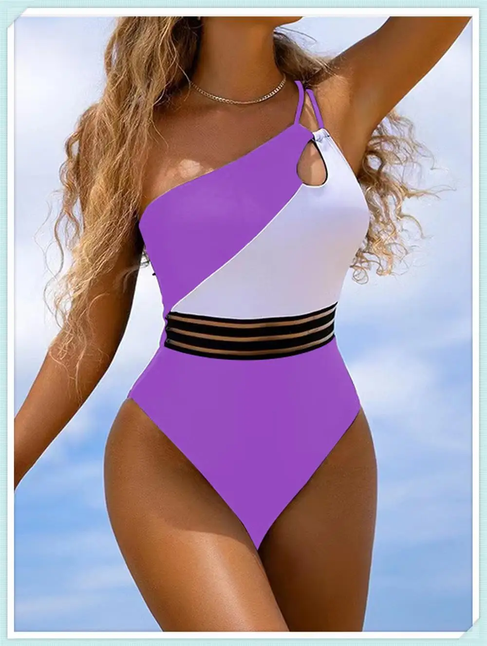 Model Number: One Shoulder Cut Out Bikini Women Cloth Panel Patchwork Bodysuit
